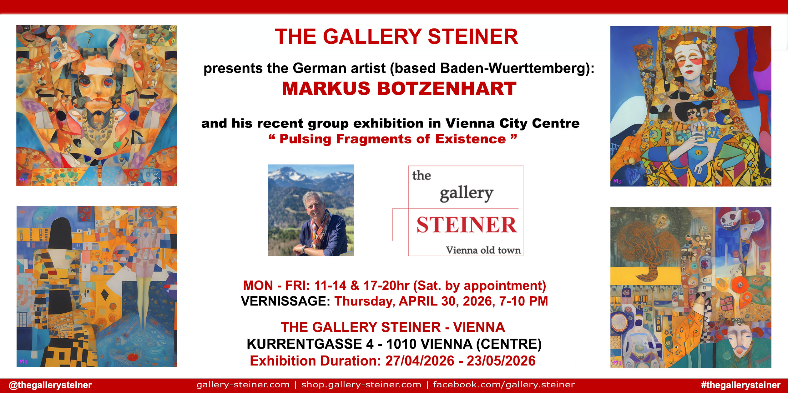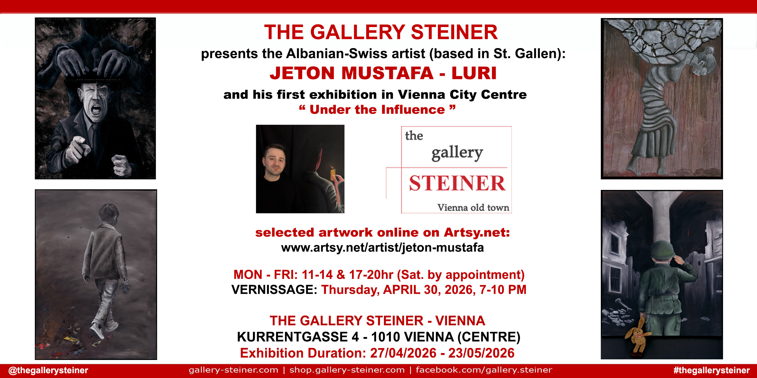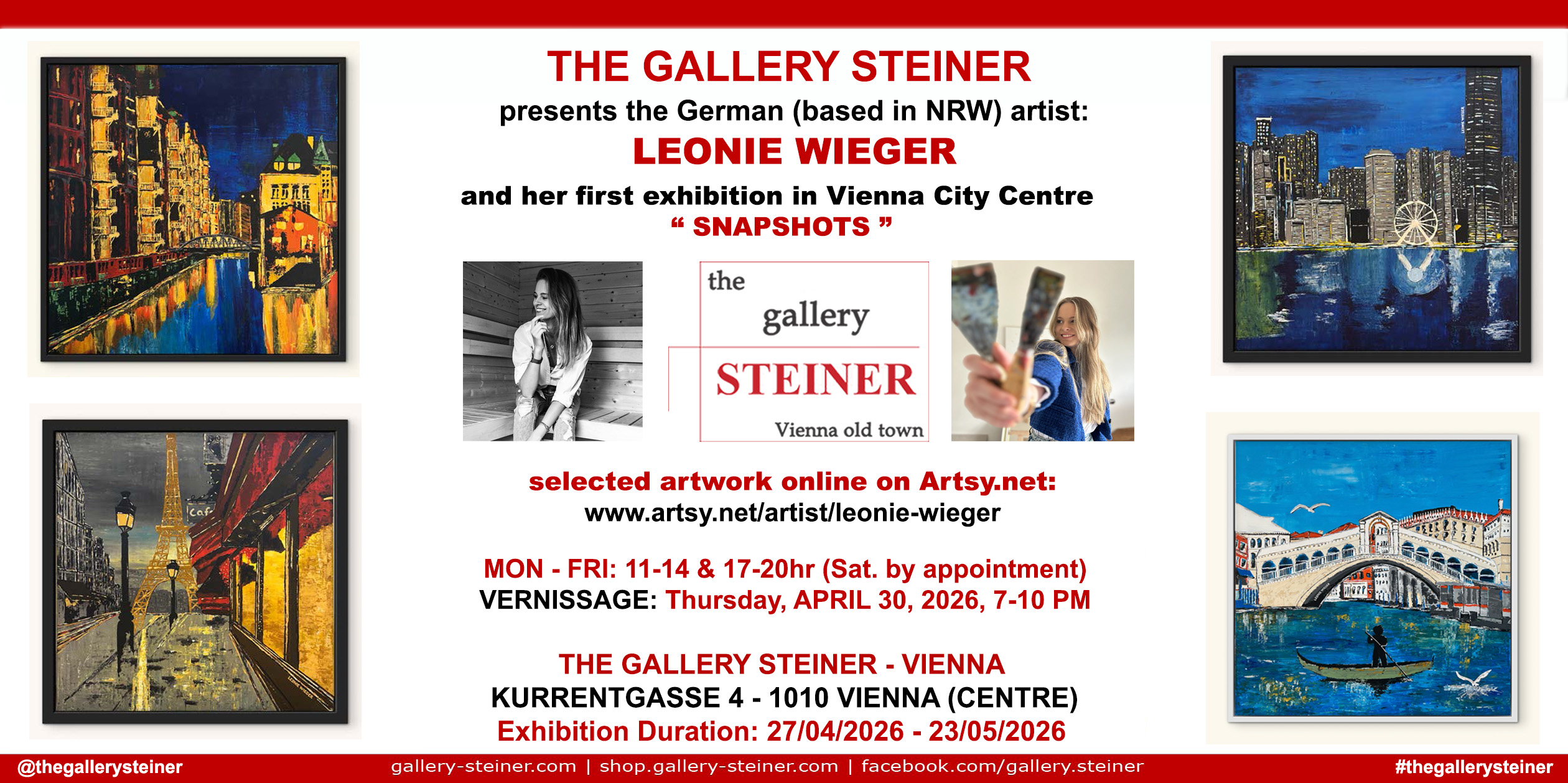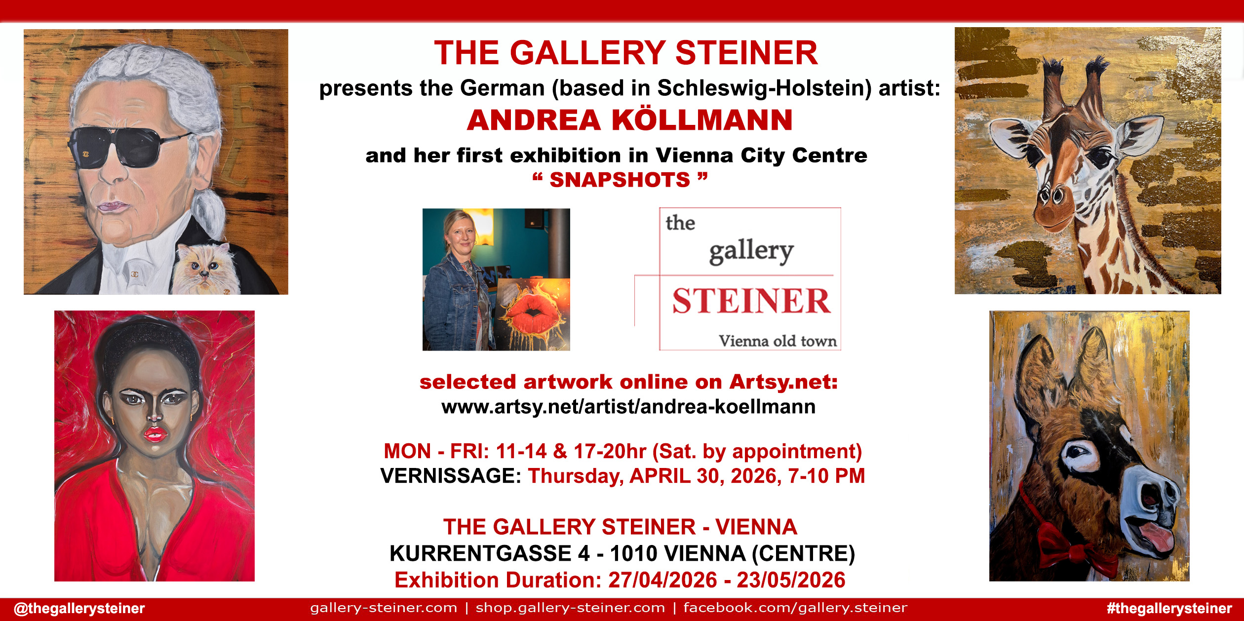 the gallery is currently regular open, on weekdays, (MON-FRI) from 11am-2pm and 5-8pm, in addition CLICK & COLLECT is also possible, so feel free to order through our ARTSY online shop, which orders will be promptly delivered worldwide, for details contact Mr. Steiner at +43 660 28 17 or Email: dominic(at)gallery-steiner.com and feel free to browse online selected artworks of the most recent exhibitions: https://www.artsy.net/the-gallery-steiner